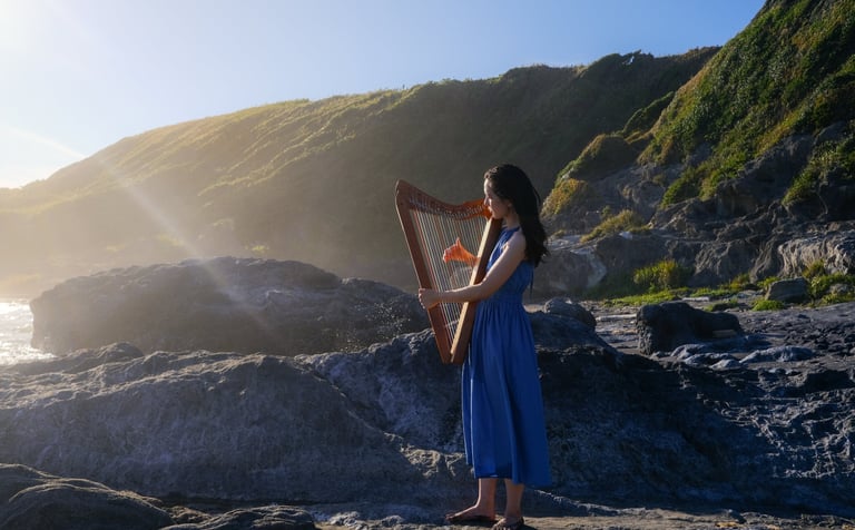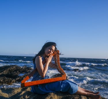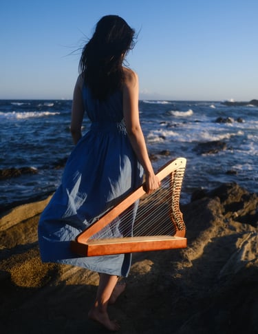 I love how Mathilde’s photos turned out. They beautifully captured our vision to blend the vastness of the sea with sparkling sunlight dancing across the water, while channeling that dreamlike Pre-Raphaelite mood. You can read more about how this concept took shape on my blog.